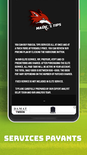 Il n'y a que des conseils de paris sur le football dans notre application de conseils de paris gratuits Magical Tips. Toutes les ligues du monde sont analysées par le système grâce à l'algorithme de nouvelle génération que nous avons développé. Les correspondances les plus fiables sélectionnées par le système sont envoyées à notre équipe d'analyse.