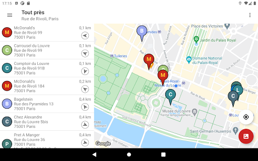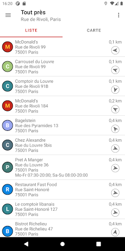 Trouvez des restaurant rapide près de votre emplacement et n'importe où dans le monde. L'application affiche des éléments dans une liste ainsi qu'une carte et vous permet de naviguer facilement vers un objet en un seul clic.