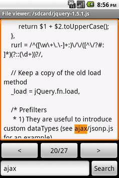 You can move among the file pages and search for text.