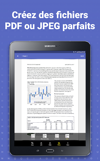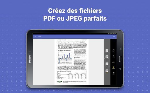 • Obtenir des copies numériques de tout papier imprimé ou écrit à la main et enregistrer les numérisations sous images JPEG ou documents PDF interplateforme.