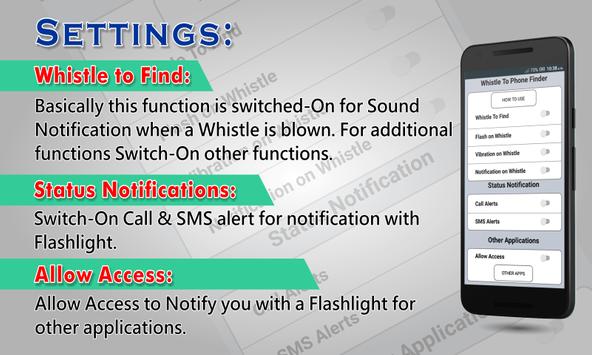 in setting screen to find your mobile when you blow whistle. For other additional functions activate or deactivate the:
