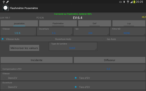 Vrai flashmètre et posemètre avec une précision de 0,1 EV.