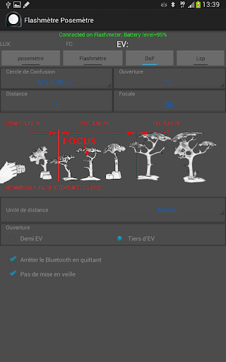 La fonction calculateur de profondeur de champ intégrée à l'application est très utile et
