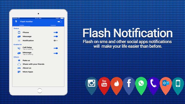 Flash Notifier is a “Flash Light Alert Call & SMS” service that alerts you on an incoming call and SMS with a blinking Flashlight. This application alerts you with a blinking flashlight when you have an incoming call or incoming SMS and alerts you when you have a notification.