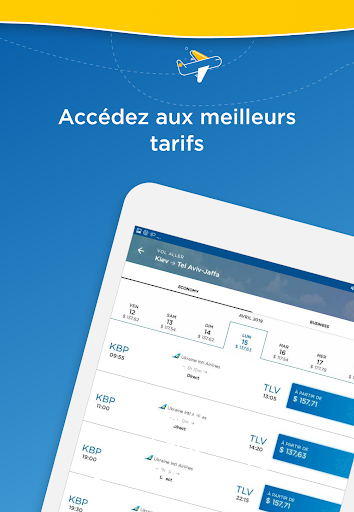 Vous pouvez acheter des vols de l’Ukraine vers presque tous les pays du monde! L’application vous propose un très large choix d’aéroports desservis par des compagnies aériennes ukrainiennes. Pour commencer votre recherche de vol, saisissez les informations de route dans les champs «Départ» ou «Arrivée». Et voilà! L’horaire appartient devant vos yeux!