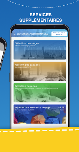 On propose une large gamme de services pour améliorer votre vol: commande de plats délicieux, achat de bagages supplémentaires, choix de places pratiques en avion. Tout pour votre confort!