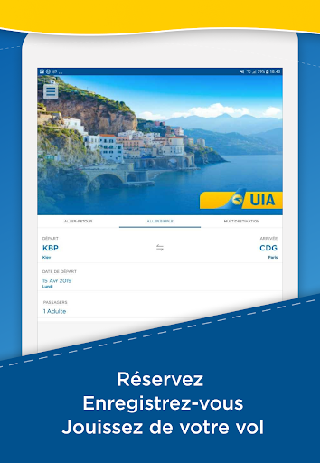 Vous pouvez payer le prix de billet d’avion à votre convenance : par carte, en espèces ou sur facture. L’application mobile FlyUIA n’utilise que des faibles plateformes de paiement. Alors soyez sûr que l’achat via l’application sera simple et sécurisé!