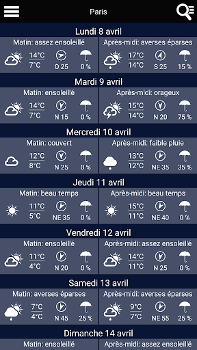 - Probabilité d'ensoleillement et de précipitations