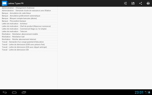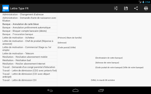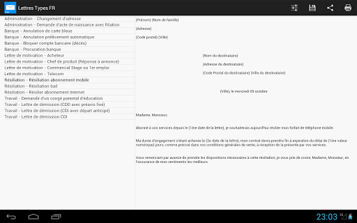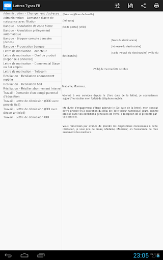 Cette application contient de nombreux modèles de lettres types utilisés en France.