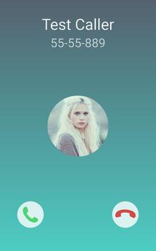 Second call screen is with full screen caller image. Full screen hd image consist of circle images. Call screen shows full screen caller id for all contacts. Swipe to answer or reject.