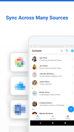 * Importer et synchroniser des informations de contact avec Up à 5 comptes source de synchronisation afin que vous puissiez rester concentré sur les relations de n'importe où.