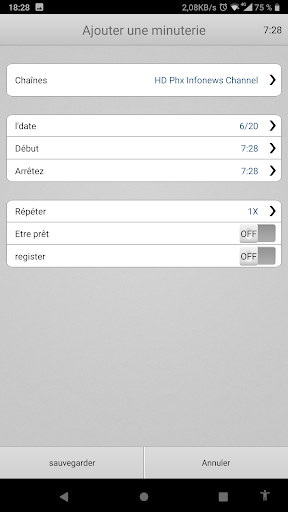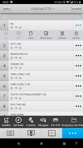 Cette application est un programme client pour STB (Set Top Box) qui peut prendre en charge G-MScreen, il fonctionne avec STB via le WiFi interne.Fonction principale:1.Recherchez / changez de chaîne de STB2.Modifier les chaînes de STB, y compris déplacer, renommer, supprimer, verrouiller, définir un favori, trier.3. Regarder les chaînes de STB par appareil mobile avec cette application installée.4.Vérifier les chaînes EPG (Guide électronique des programmes).5. Interface de télécommande virtuelle, y compris les boutons, le gyroscope et le tableau tactile.6.Ajout / Edition / Suppression du minuteur STB7.Changez le réglage du STB, y compris la minuterie d'arrêt, le contrôle parental, le mot de passe, le verrouillage / déverrouillage de l'écran, la mise sous / hors tension, les paramètres d'usine.8.STB invite intelligemment l'utilisateur, le téléphone mobile reçoit un appel9.Surppot Sat to IP, besoin de routeur sur 150M WiFi.10.Support SatFinder, APP affiche le signal du signal et un bip lors de l'installation de la parabole.11.Support DLNA, pour afficher les images, les vidéos et le son de votre téléphone sur un grand écran de télévision.