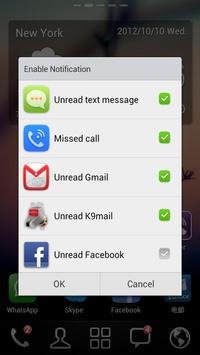 - Support for missed calls, unread SMS, Facebook, Twitter, Gmail, Whatsapp, Viber, Kakao Talk, Viber, Google Talk, Native Mailbox, Skype, Yahoo Mail, Hotmail, WeChat.