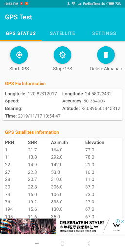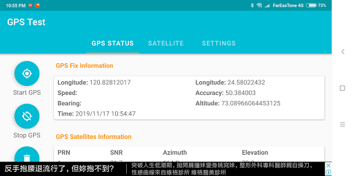 Il peut afficher la valeur GPS SNR et la vue satellite.