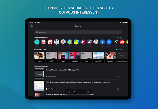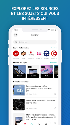 Vous voulez trouver des actualités sur un sujet ou une source en particulier? GeekTech vous permet de rechercher des sujets ou des sources à lire ou à suivre.