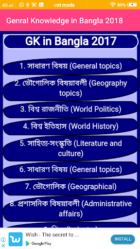 GK in Bangla app contains many General Knowledge Topics and Thousands of Questions in Bangla that will increase your GK. We hope you will like it.