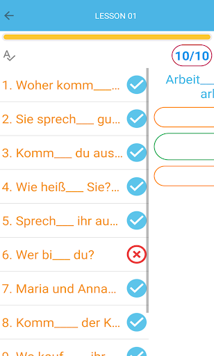 Cette application contient tous les sujets de test de grammaire liés au niveau professionnel allemand B2.