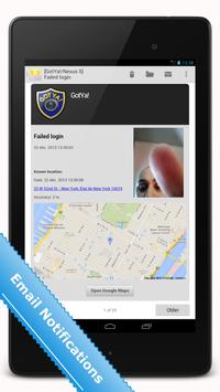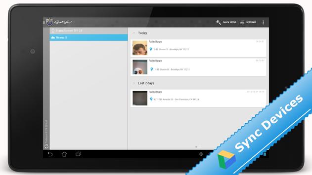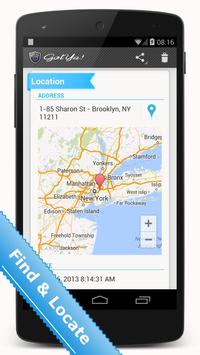 For your safety, GotYa! takes a silent snapshot through the front facing camera of the criminal who is attempting to use your device, whenever the screen lock is entered incorrectly. Then, Gotya gets the location of your device, forms a Google maps link, and then send it along with the picture to your email!