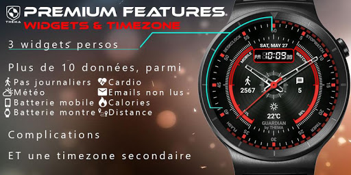 - Widget d'horloge (Seconde non affiché pour raison d'autonomie de batterie)
