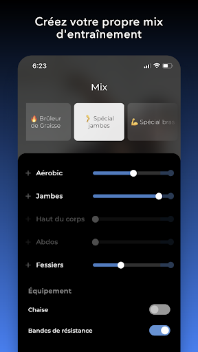 Choisissez parmi des préréglages tels que Spécial Jambes, Cardio Killer, Total Body - Sans Sauts, ou notre préféré, Sexy Back, ou composez votre propre mélange d'aérobic, abdos, fessiers, jambes et haut du corps.