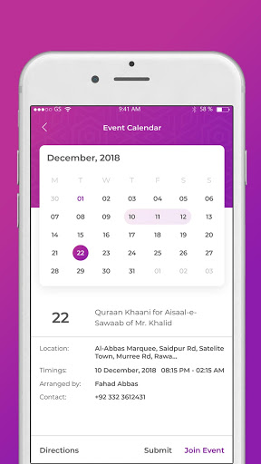 • Obtenez tous les événements Halqa E à venirSur le calendrier de l'application.