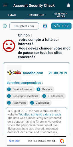 - D’être notifié en cas de nouvelle fuite sur un compte mail