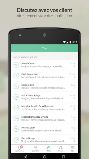 - discutez avec vos clients directement sur l'application. Présentez-vous auprès de vos nouveaux clients, posez-leur vos questions sur les prestations et construisez de bonnes relations en maintenant une communication fluide.