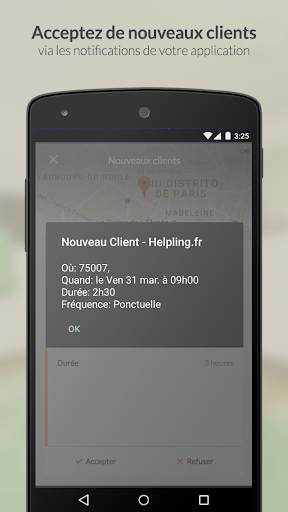 - vous pouvez désormais recevoir des notifications pour chaque nouvelle offre de prestation. Cliquez sur la notification pour voir plus d'information sur la prestation dans votre application et répondez rapidement et facilement sans avoir à utiliser votre forfait SMS.