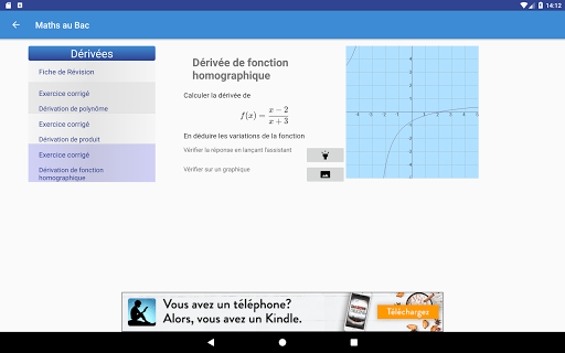 Sur certains exercices, vous pouvez afficher le graphe associé à la fonction étudiée.