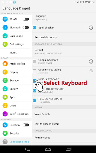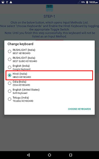 4. Select "Hindi Keyboard" from "Choose Input Method" available on the Notification bar.