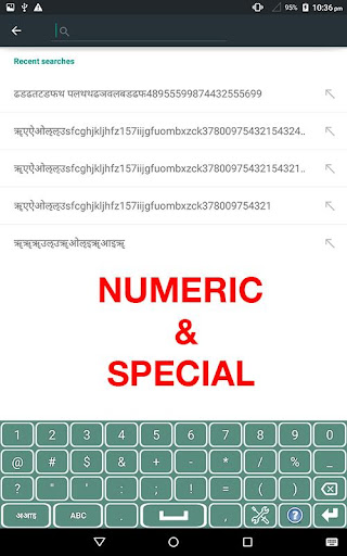 3. Swipe left and right to switch among English, Hindi, and Numeric keyboards.