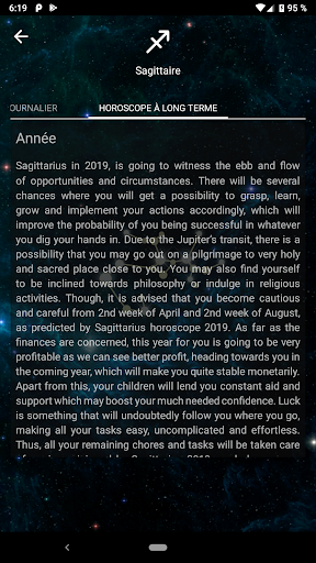 Votre horoscope est le miroir du passé, du présent et du futur de votre vie. Il aide à déchiffrer les défis, à saisir les opportunités et à résoudre les mystères qui bloquent votre chemin vers le succès et la paix. Regardez dans le futur avec notre application! L'application «Horoscope Pro» affiche les prévisions astrologiques d'un astrologue professionnel pour hier, aujourd'hui, demain, la semaine, le mois et 2019 toute l'année. L'horoscope quotidien est mis à jour tous les jours. Connaissez votre Horoscope pour connaître les alignements cosmiques qui vous attendent.