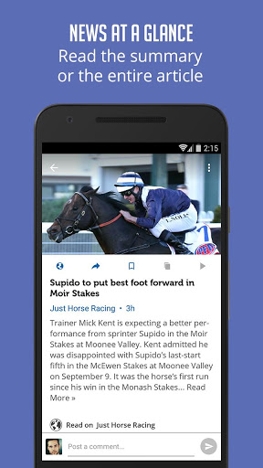 * No setup or learning time required. Fire the app for the first time – and immediately see what are the current “must-know” news in the horse racing world