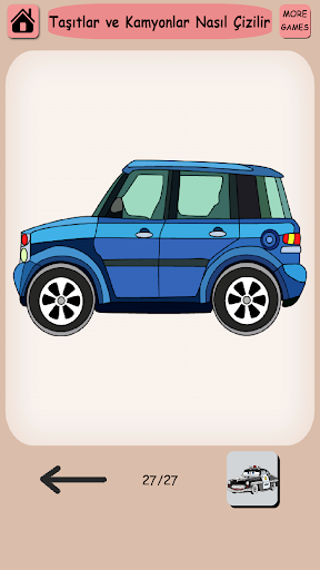 Dans la version actuelle de l'application, il existe 23 tutoriels de dessins de véhicules différents.