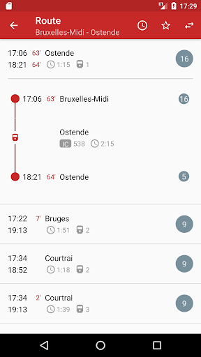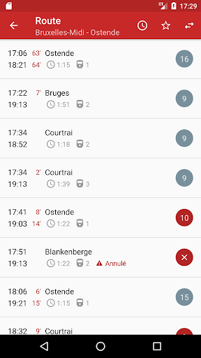 Planifiez un itinéraire entre deux stations belges, comparez rapidement plusieurs possibilités et obtenez toutes les informations dont vous avez besoin à partir d'un seul écran. Si vous avez besoin de plus d'informations, cliquez simplement sur le transfert ou le train dont vous avez besoin d'informations.