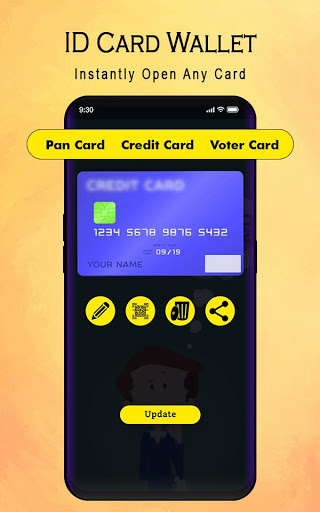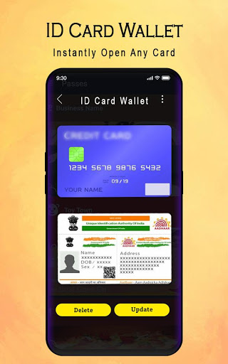 Carte d'identité Portefeuille mobile permet de stocker toutes vos cartes et votre coffre-fort de votre carte d'identité à un endroit sans les transporter tout avec vous à chaque fois. Chaque fois que vous avez besoin de ces cartes, ouvrez simplement l'application et numérisez-le si nécessaire. Vous pouvez utiliser pour afficher votre identifiant ou utiliser vos cartes de crédit ou de débit pour effectuer le paiement. Pas de soucis de perdre votre portefeuille et de perdre vos cartes. Comme vous pouvez garder tout votre original à la maison.