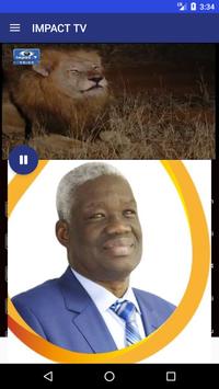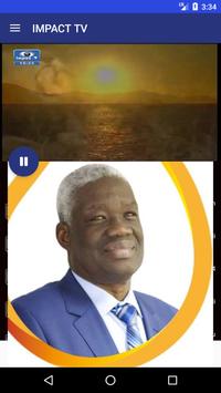 Impact TV est une station de type confessionnel qui émet sur la bande UHF sur 511.25 Mhz depuis le 19 Juin 2010 et sur Satellite dans 43 pays d’Afrique sur Eutelsat 16 A(W3A) depuis le 19 Juin 2012. Impact TV est désormais accessible partout dans le monde à travers la toile à l’adresse www.impacttele.tv Impact TV émet en continue (24H/24) à travers un programme diversifié et touchant les différentes catégories d’âge, socioprofessionnelles, etc. La grille de programme compte quarante émissions dont des émissions d’informations générales, des émissions religieuses, des émissions de développement, des émissions consacrées aux enfants, aux jeunes, aux femmes, des émissions musicales et de divertissement. Impact TV est dirigé par un Coordonnateur Général qui a sous sa responsabilité trois Départements dirigés par des Coordonnateurs. Les Départements de Impact TV sont au nombre de trois :