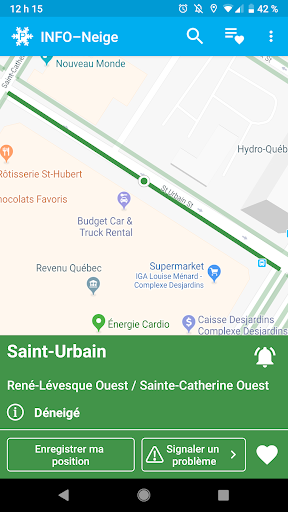 L’application se branche en temps réel sur les données ouvertes de la Ville de Montréal et affiche l'état d'avancement du chargement de la neige, dans une interface simple et intuitive. Elle vous permet de signaler votre position et de recevoir une notification lorsque l'état de la rue dans laquelle vous êtes stationné change, vous évitant ainsi le remorquage de votre véhicule.