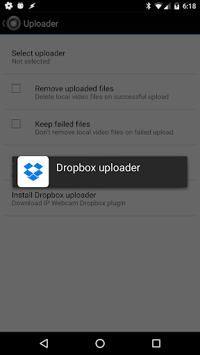 IP Webcam Uploader télécharge des fichiers du système de fichiers local vers Dropbox.