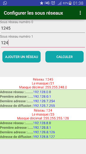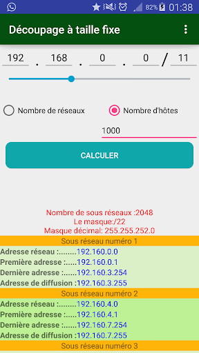 On fournit à l'application le nombre de machines dans chaque réseau. Et comme résultat, on obtient les informations sur chaque réseau (adresses réseau, adresses de diffusion , etc).