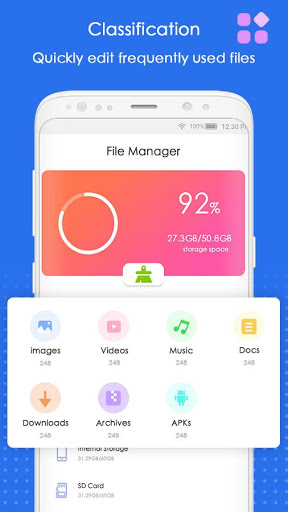 Gérez vos fichiers efficacement et facilement avec Ivy File Manager. Ivy File Manager vous aide à faire face à vos fichiers si elles sont stockées dans la mémoire de votre appareil ou dans la carte SD. Le gestionnaire de fichiers est un fichier de fichier complet (images, musique, films, documents et app) pour une utilisation locale ou réseau. Ivy File Manager gère votre téléphone Android et vos fichiers efficacement et facilement et partagez votre fichier sans données.