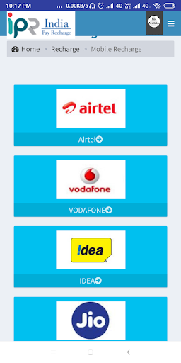 India Pay Recharge provide Airtel, Vodafone, Idea, BSNL,