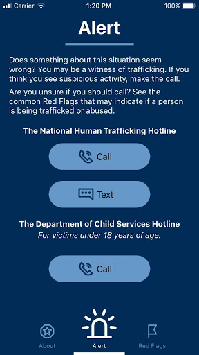The ITVAP mobile app educates users on the red flags of Human Trafficking and points them in the right direction for help/additional resources in the state of Indiana
