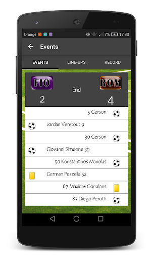 Consultez le résultat et les événements en direct des matchs de vos équipes préférées: