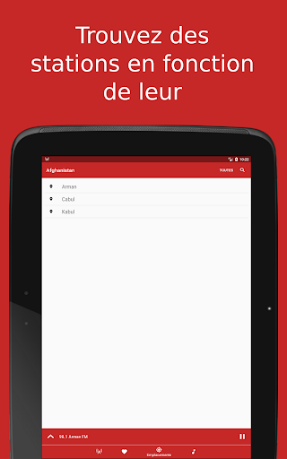 Vous pouvez mettre en pause et reprendre l'écoute de la radio en cours. Si votre station envoie des informations sur les chansons jouées, celles des chansons écoutées seront affichées et pourront être facilement mémorisées en une seule pression.