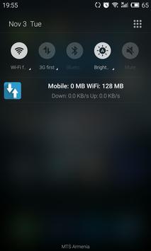 Internet Speed info has external layout which allows to know about internet traffic using applications with their internet speed everywhere. User can see mobile and Wifi data usage with both graphics and list data. There are mobile upload, mobile download, mobile total, WiFi upload, WiFi download and WiFi total usage informations. User can zoom graphics using 2 fingers and to know more about daily usage using graphic method. Application shows information about mobile connection, mobile internet and WiFi internet (e.g mac address, SSID...). User can turn off or turn on WiFi immediately from application. There is live speed activity in application using which user can realtime see internet download and upload curve versus time and below it information about internet using applications. Internet speed meter in status bar and notification bar is shown only when internet is