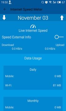 Internet Speed Meter shows realtime internet speed of your internet connection on status bar. Application also shows daily both mobile and WiFi data usage with current internet download and upload speed.