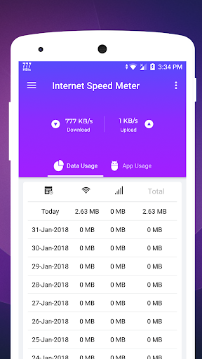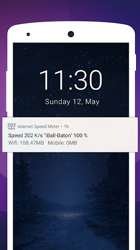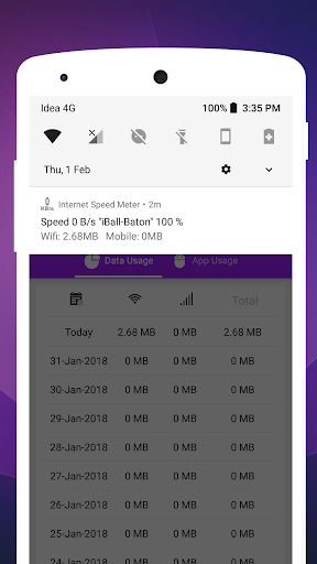 Mètre de vitesse Affiche votre utilisation actuelle de la vitesse Internet dans la barre d'état et affiche la quantité de données utilisée dans le panneau de notification.
