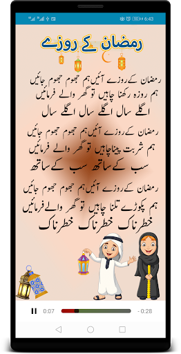 Every Muslim parents take interest in Islamic education. Islamic rhymes is an Islamic basic education learning poem application. Islamic rhymes Urdu collection is richly embedded with beautiful heart touching poems in Urdu.