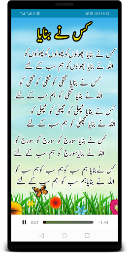Islamic rhymes offline is an availability of offline mp3 poems to makes free time useful. Islamic poems in Urdu contains fantastic background and display of the words for proper pronunciation.